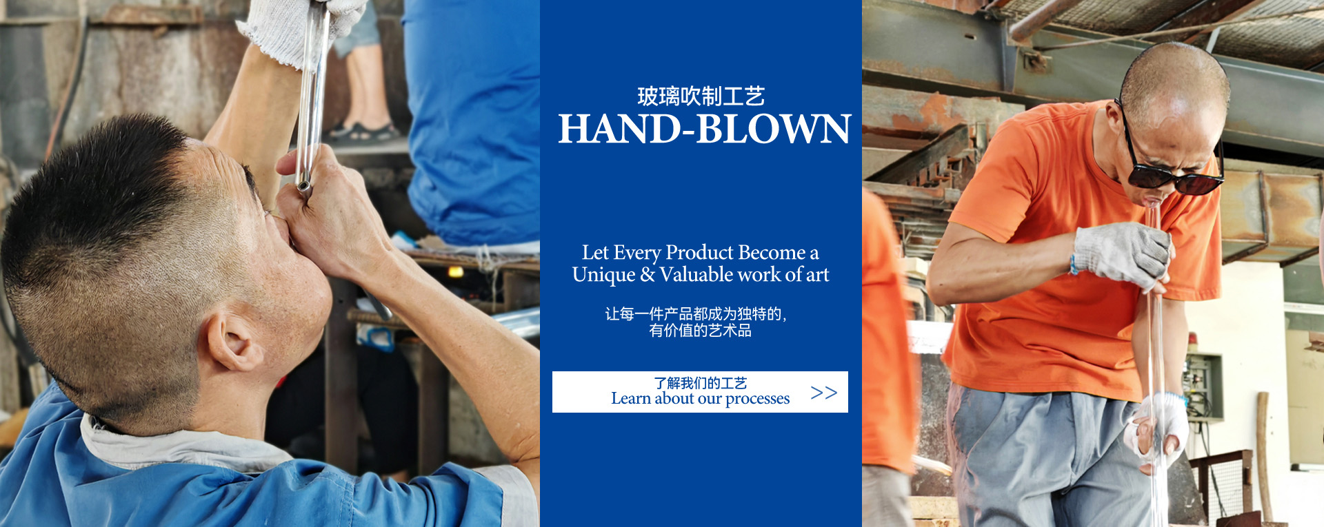 人工吹制每一個產品,讓產品在高標準下實現獨特的藝術性