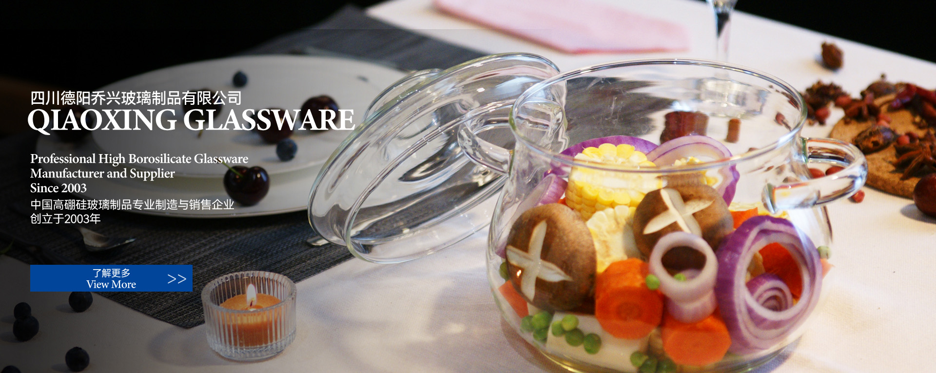 四川德陽喬興玻璃制品有限公司主營業務為高硼硅耐熱玻璃制品的設計、研發、定制、生產、加工及銷售